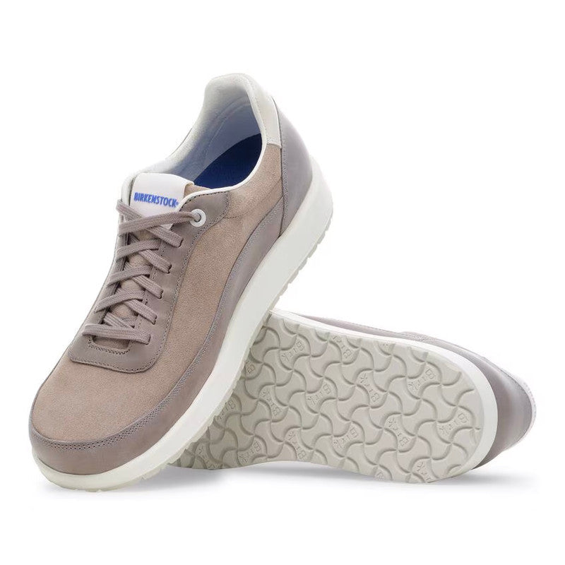 The BIRKENSTOCK Honnef City is a sporty sneaker characterized by a retro running shoe shape. Its simple, urban design makes it just the thing for a modern and sporty everyday look. The comfy and light Deep Blue Footbed makes the shoe a perfect 24/7 all-rounder, especially on long and active days. Perfect for your next holiday, extensive walks, or city trips. Thanks to its two components, the sole promotes a firm and comfy footing. It consists of a polyurethane midsole and an abrasion-resistant sole for a secure grip. The upper is made from high-quality , soft natural leather in combination with soft suede.