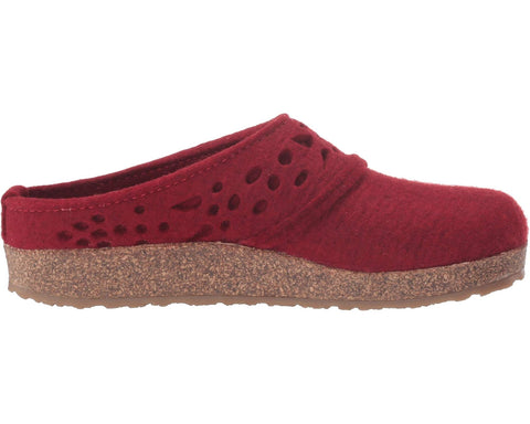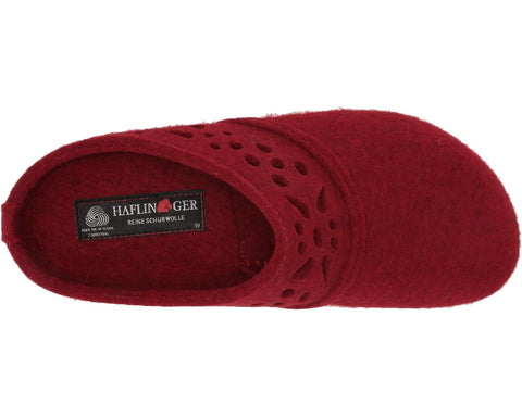 Enjoy the delicate trim and premium comfort of the Haflinger Lacey clog. The upper features 100% pure wool felt which allows for breathability and durability. Your feet will feel cozy and comfortable in a natural material that keeps the temperature constant whether for indoor or outdoor wear.