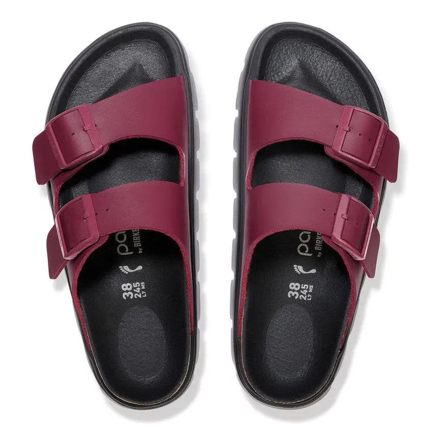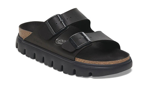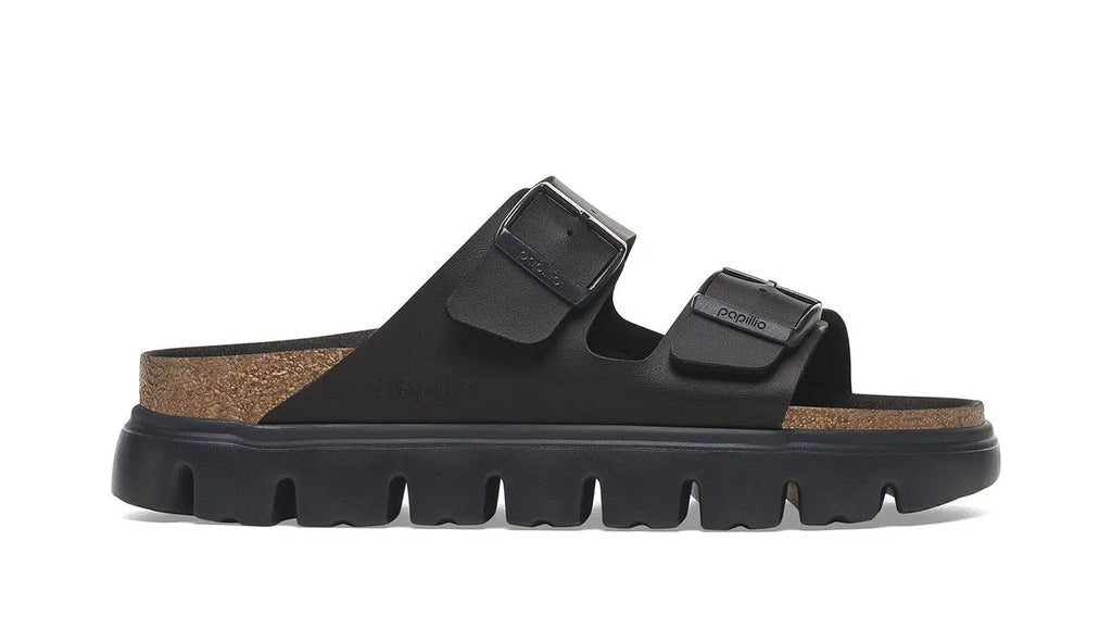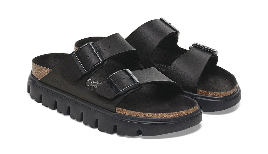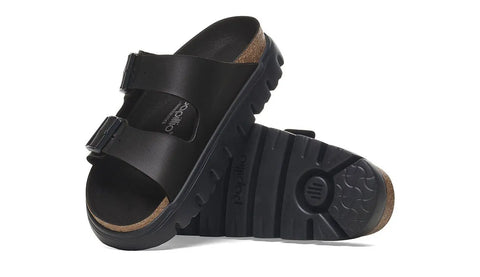 A platform sole takes the Arizona's classic design to new heights—and your style along with it. Its smooth Birko-Flor® upper creates an instant color contrast against its stacked sole. Featuring a contoured footbed that gives you the support of a BIRKENSTOCK sandal.