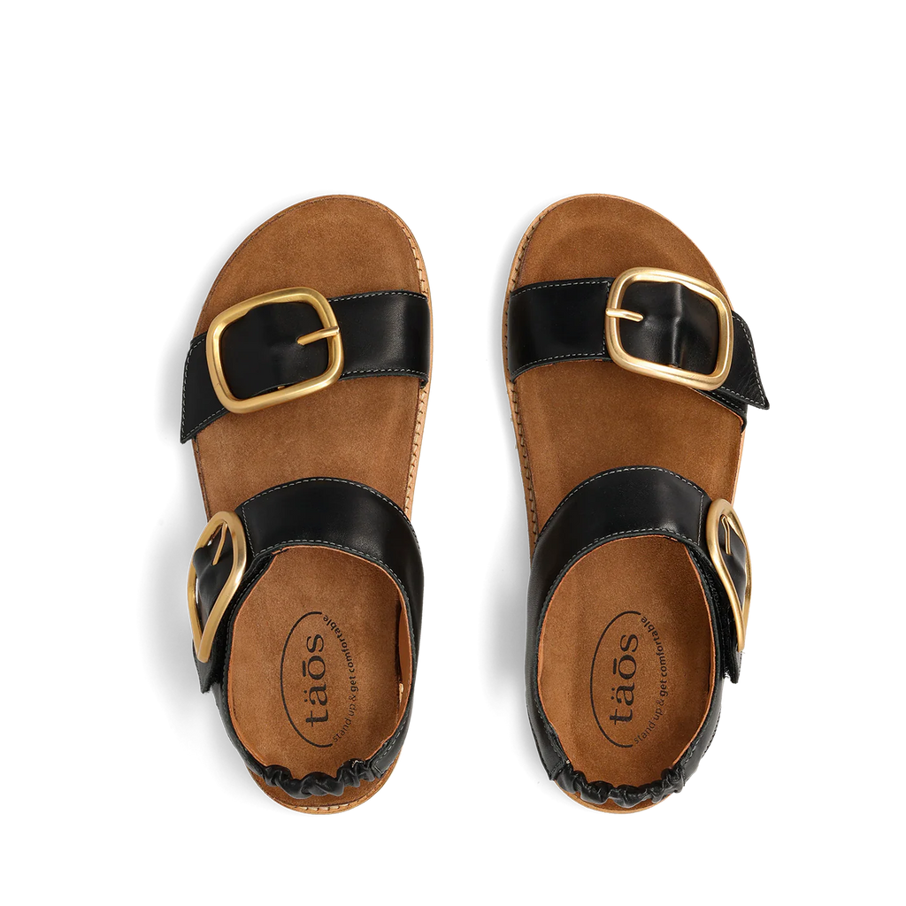 Introducing the latest addition to our Cork Support collection! Made with exquisite leathers, this modern take on our beloved Luckie sandal features the signature PU footbed lined with premium suede, offering unmatched arch support and all-day comfort. Updates of oversized decorative gold buckles adds the touch of bling that makes this a versatile choice for casual boardwalk strolls or a chic night out!
