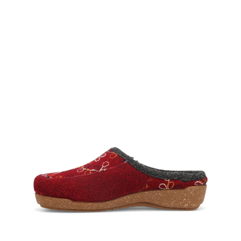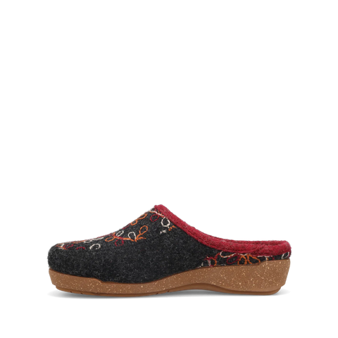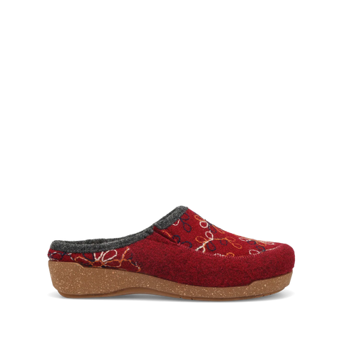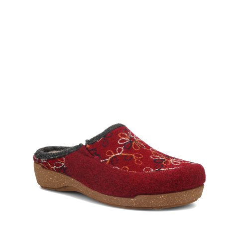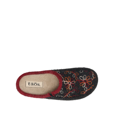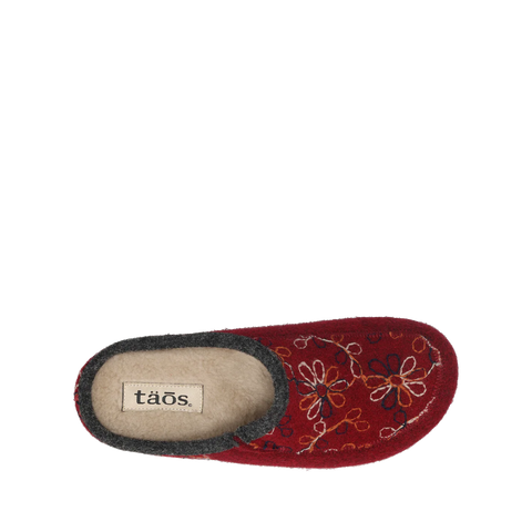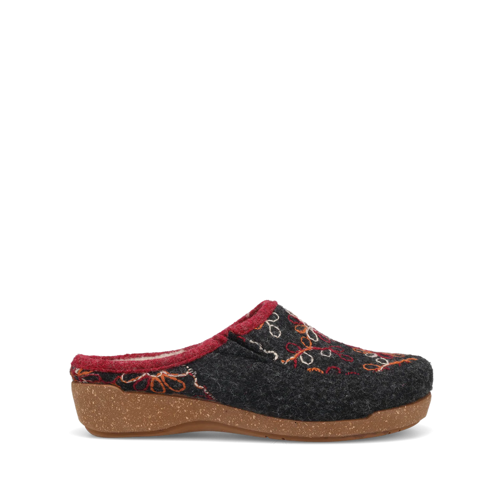 Woolflower is a fresh take on your Italian wool favorite with vibrantly outlined multi-color patterns. These Spanish-made hand-embroidered slide-on clogs brighten up your day or night, enjoy wearing them in and around the house or out and about town courtesy of the indoor/outdoor rubber outsole. The faux fur lining makes them irresistible and the signature Taos Curves & Pods® removable footbed combined with our flexible corked midsole delivers support that lasts all day and all night!
