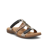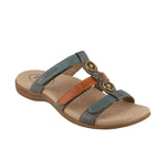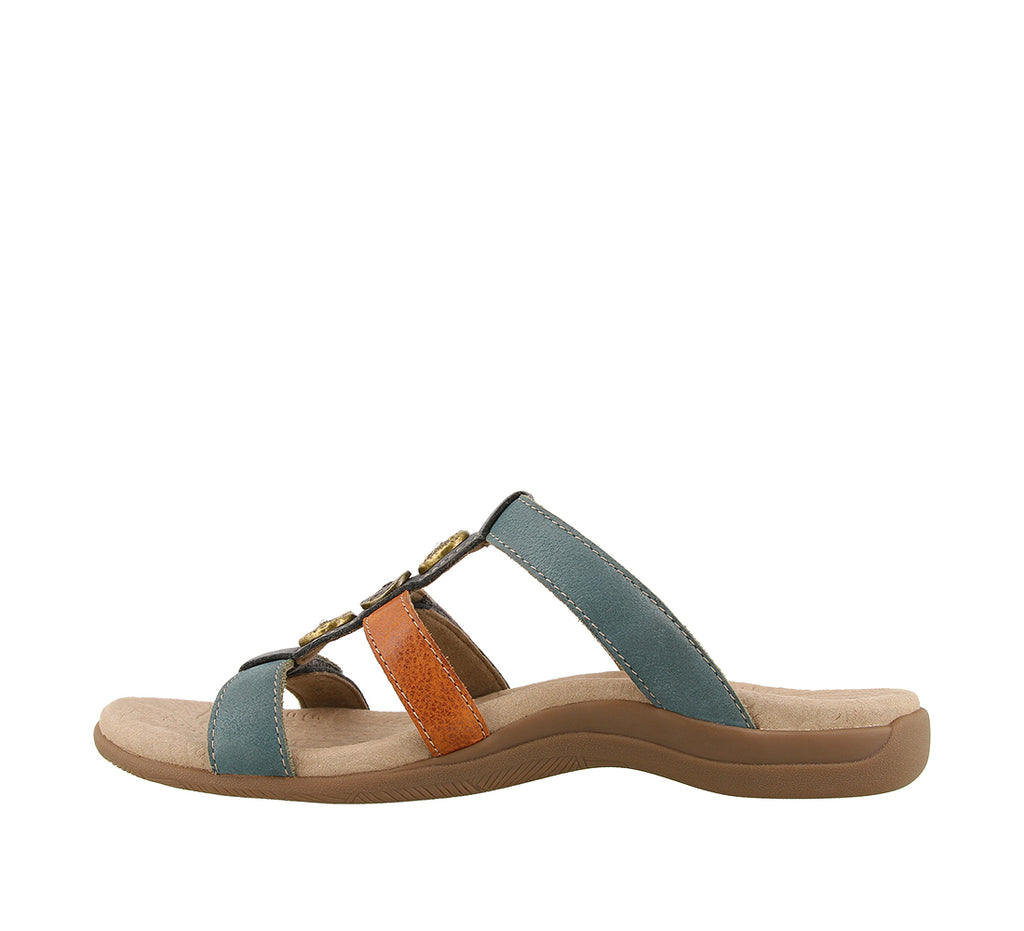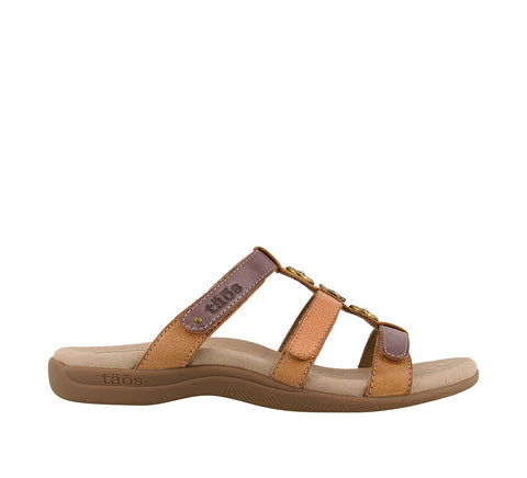 Prize 4 is the premium leather slide sandal with 3 bands of hook and loop straps offering complete adjustability. Pounded medallion hardware accent the multi-colored strappy upper offering a stylish, versatile look. Featuring an embossed microfiber footbed that is treated with an antimicrobial shield, keeping your feet cool and dry, with soft, cooling gel padding on top of polyurethane for maximum shock absorption. The outsoles are flexible, durable rubber.