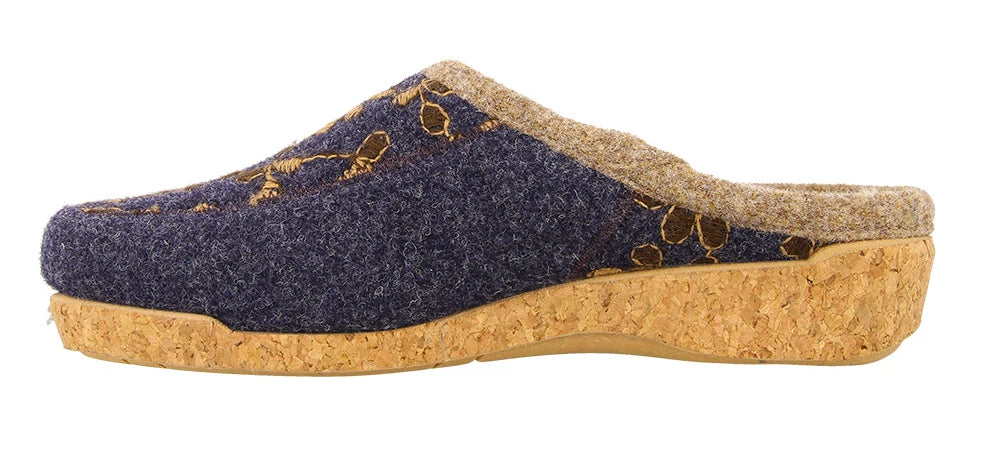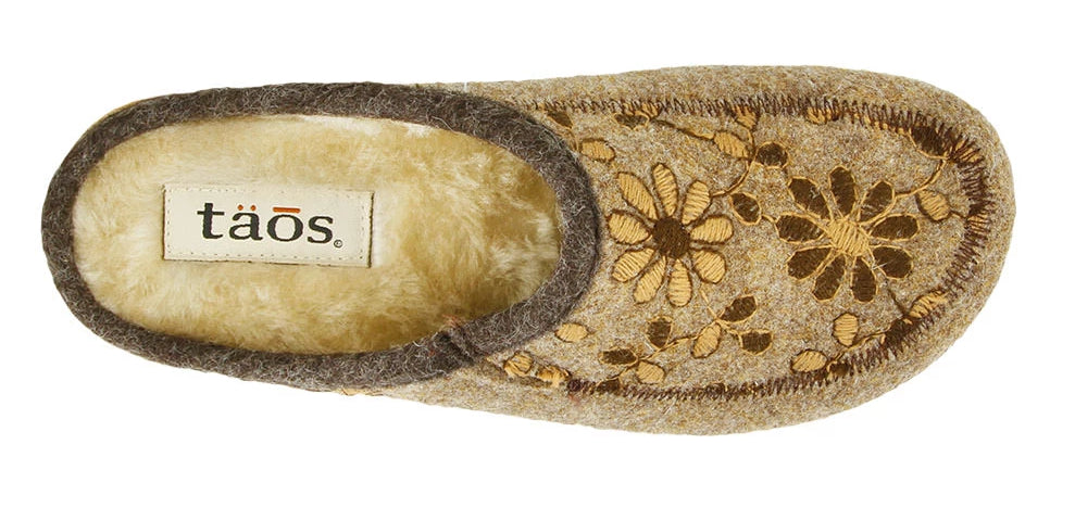 Woolderness 2 is a cozy slide on clog, perfect for cold nights or you can enjoy wearing out into town all day long with an indoor/outdoor rubber outsole. Uppers feature vibrant, hand embroidered Italian boiled wool and faux fur lining that make them irresistible. Taos Curves & Pods® removable footbed and our flexible corked midsole delivers comfort that lasts all day and all night.