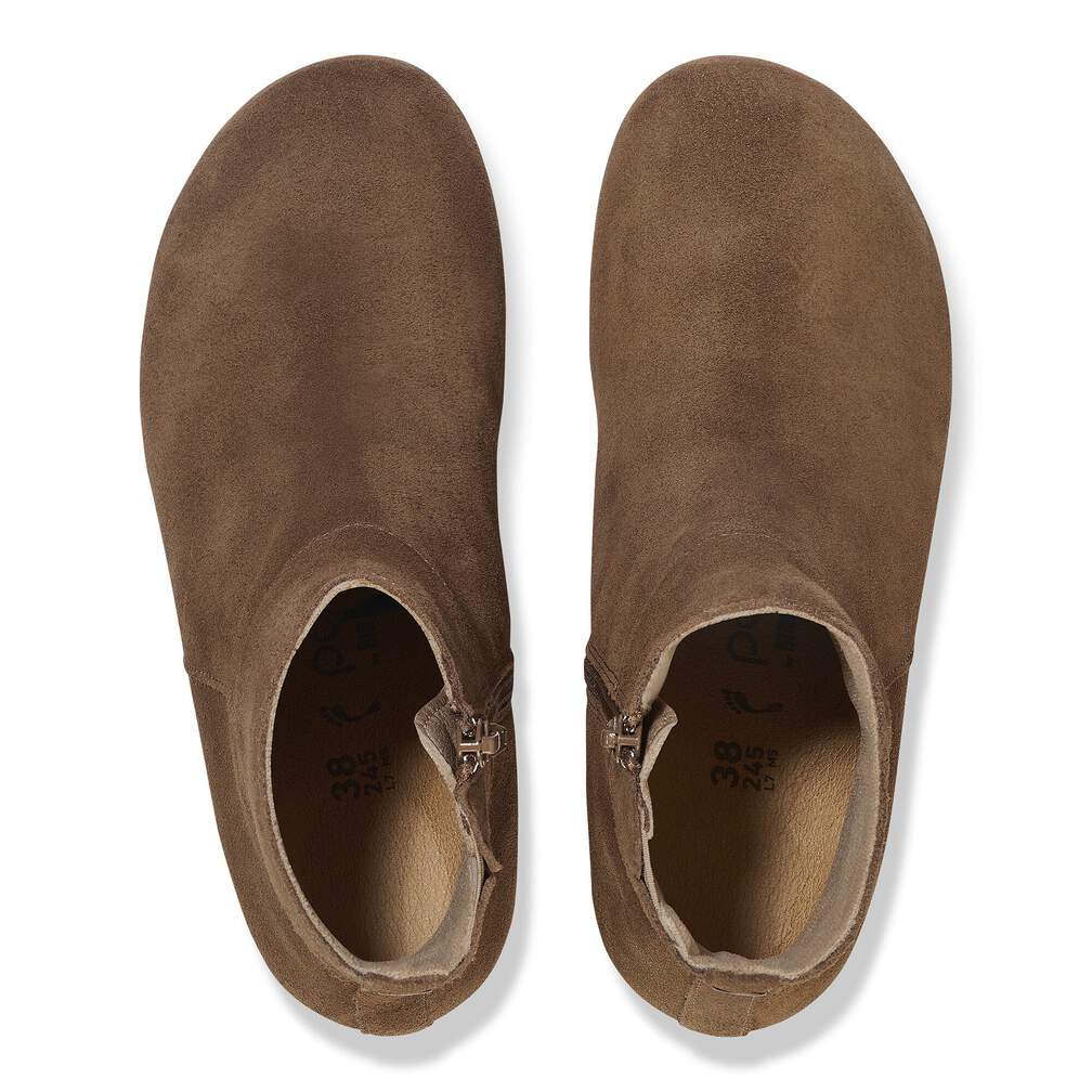 The Ebba ankle boot brings the contoured comforts of the BIRKENSTOCK footbed together with a cork wedge heel—all without adding pressure to the front of your foot. In smooth suede for a classic feel. Level up your style in comfort.