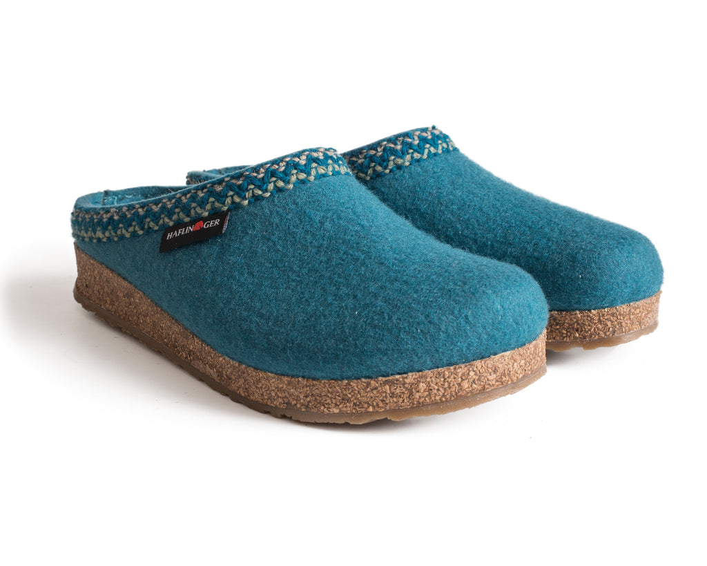 Make time for relaxation in the Haflinger Zig Zag trimmed Grizzly. The uppers are made of soft, boiled woolfelt which contribute to temperature control and moisture wicking. The insole is also made of boiled wool, providing a soft and dry foot environment. The midsole is anatomically correct, made of a combination of cork and latex, giving you excellent arch support and a heel cup for shock absorption without sacrificing flexibility. The durable crepe outsole will provide traction whether you're on a nature walk or just doing chores around the house. Whether you're ready to grab a book for a little cozy quiet time or need to be on your feet all day, the Haflinger Zig Zag will be your go-to shoes for the job!